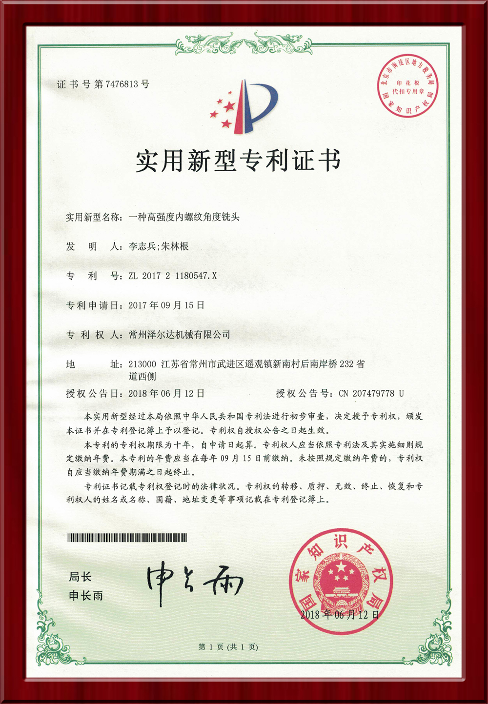 • 7476813實(shí)用新型專利